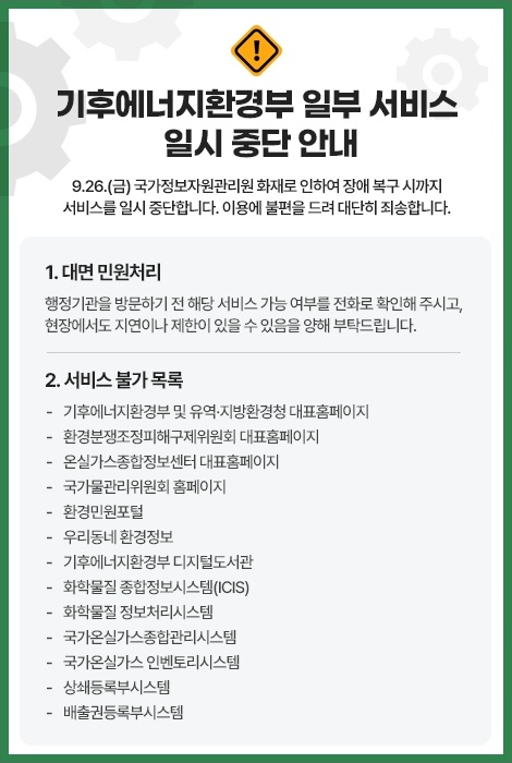 기후에너지환경부 일부 서비스 일시 중단 안내
